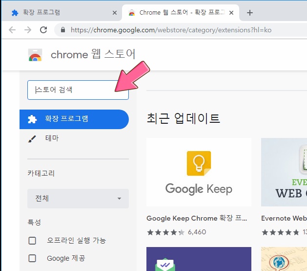 (구글 크롬에서 크롬 웹 스토어를 검색 하셔도 됩니다.)
