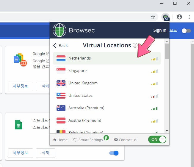 browsec vpn 이라는 확장 프로그램이 나오는데요.