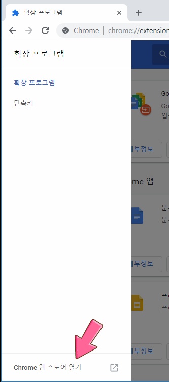 좌측 하단 끝을 보면, chrome 웹 스토어 열기 가 나옵니다.