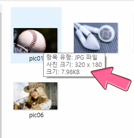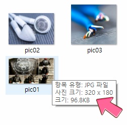 예) pic01.jpg 사이즈 320×180 이미지가 있습니다.