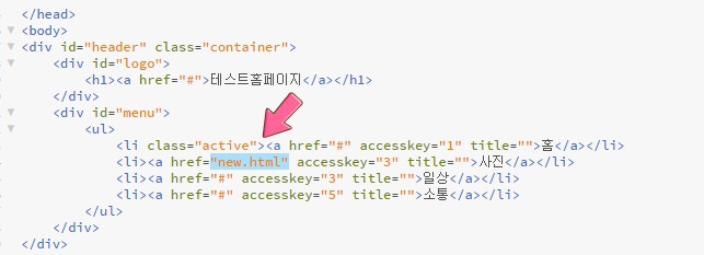 <li class="active"><a href="new.html" accesskey="3" title="">사진</a></li>