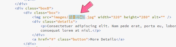 사진처럼 pic03 에서 샘플사진1 로 이미지 이름을 변경해주세요.