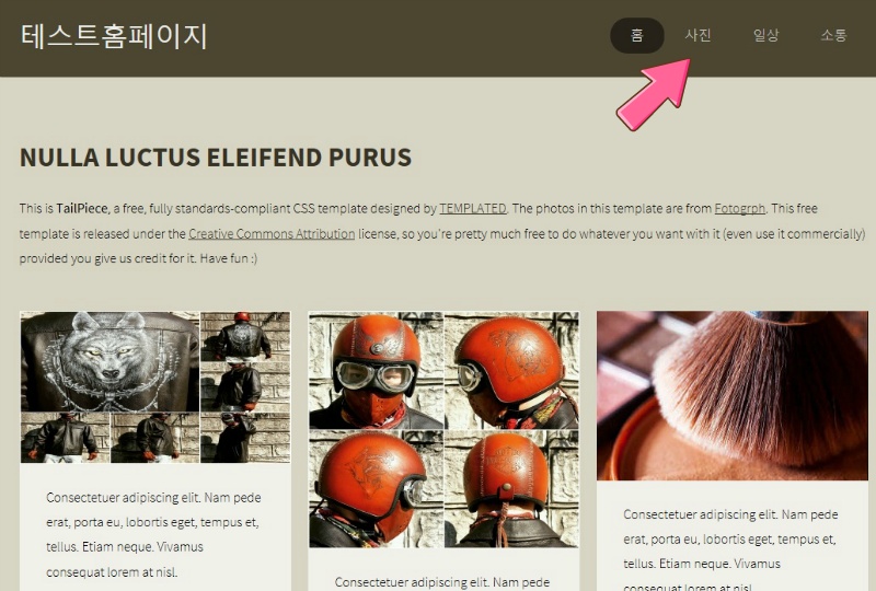 기존에 있던 첫페이지 입니다. 새롭게 추가한 페이지 사진 메뉴를 을 클릭하면,