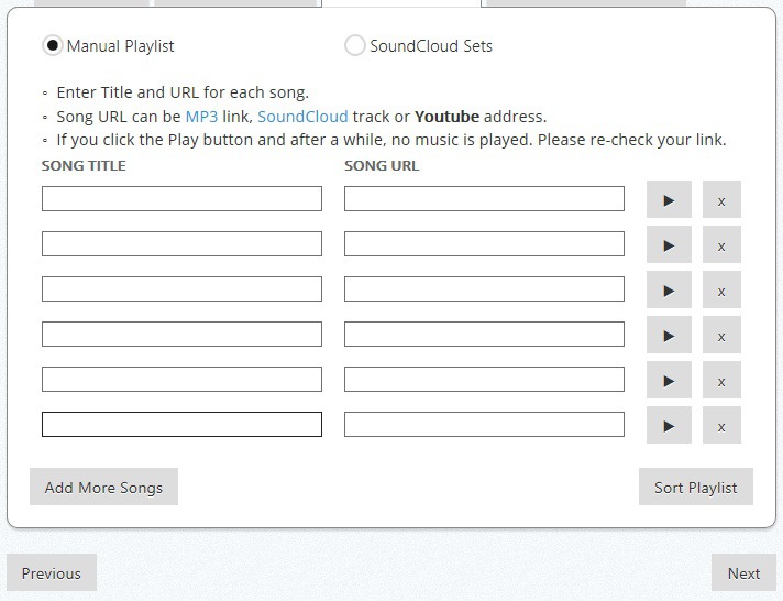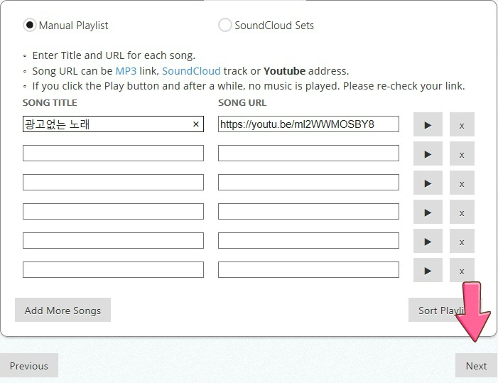 좌측에(SONG TITLE) 음악이름 , 우측에 음악주소(SONG URL)를 넣으시면 됩니다.^^