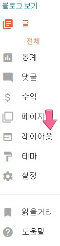 구글블로그 관리페이지에서 레이아웃을 클릭해 줍니다.