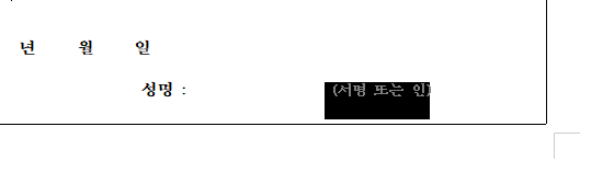 (서명 또는 인)란에 온라인에서 만든 사인(서명)이 들어간게 보이는데요, 사인이 클경우 마우스를 이용하여 크기를 줄이거나 늘려줄수 있으며, 위치도 옴겨줄수 있습니다. 이부분은 직접 해보시면 이해가 되실거라 생각합니다.^^