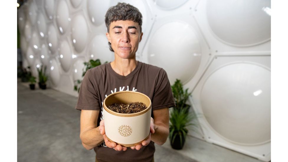 그러나 현재 연구에 따르면 오늘날 버섯 관의 실제 영향을 알기는 어렵습니다. 저는 Planet Mark 보고서의 저자인 Rima Trofimovaite에게 버섯 관의 이점이 무엇인지 물었습니다. 그녀는 얕은 무덤에 자연적으로 매장된 후 인체가 땅을 오염시키는지 여부에 대한 데이터가 제한적이라고 말합니다. 그러나 그녀는 대부분의 오염 물질이 지하에서 불과 몇 피트 떨어져 있을 때 추가 곰팡이가 필요하지 않을 때 "올바른 유기체와 함께 올바른 수준에서 분류"될 가능성이 있다고 말합니다. "나는 이와 같은 선택이 여전히 중요하다고 생각합니다"라고 그녀는 말합니다. "우리는 자연 매장이 방출이 가장 적다는 것을 알고 있지만 모든 사람이 면 수의에 싸이는 것을 좋아하지는 않습니다. 사람들은 모양이 있기 때문에 버섯 관을 선호할 수도 있습니다."