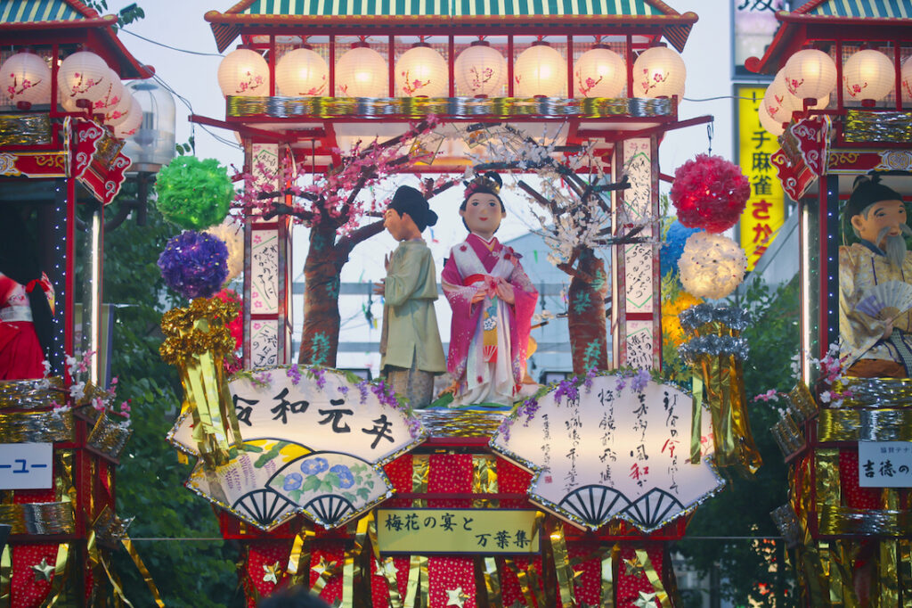 8월 초에 3일간 열리는 이 센다이 타나바타 축제는 낮과 밤 내내 다양한 이벤트가 펼쳐집니다. 아마도 일본에서 가장 유명한 타나바타 축제일 것입니다. 매년 거의 200만 명의 관광객이 센다이 역에서 시작하여 쇼핑 아케이드를 따라 걸려 있는 수천 개의 소원과 아름다운 장식을 보기 위해 몰려듭니다. 멋진 광경일 뿐만 아니라 일본을 가장 밝고 생동감 있게 경험할 수 있는 멋진 기회이기도 합니다!