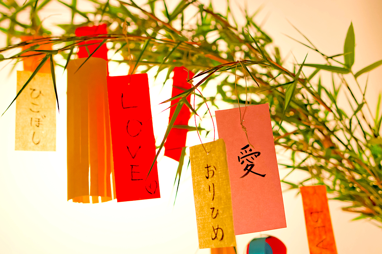 일본은 7월 7 일경 에 다나바타를 기념하는데, 소원을 색종이인 탄자쿠 에 적어 대나무 가지에 걸어둡니다. 다나바타는 7월 초에 열리지만, 일본의 일부 지역에서는 7월 말이나 8월 초에도 축제를 엽니다 .
