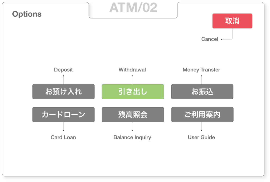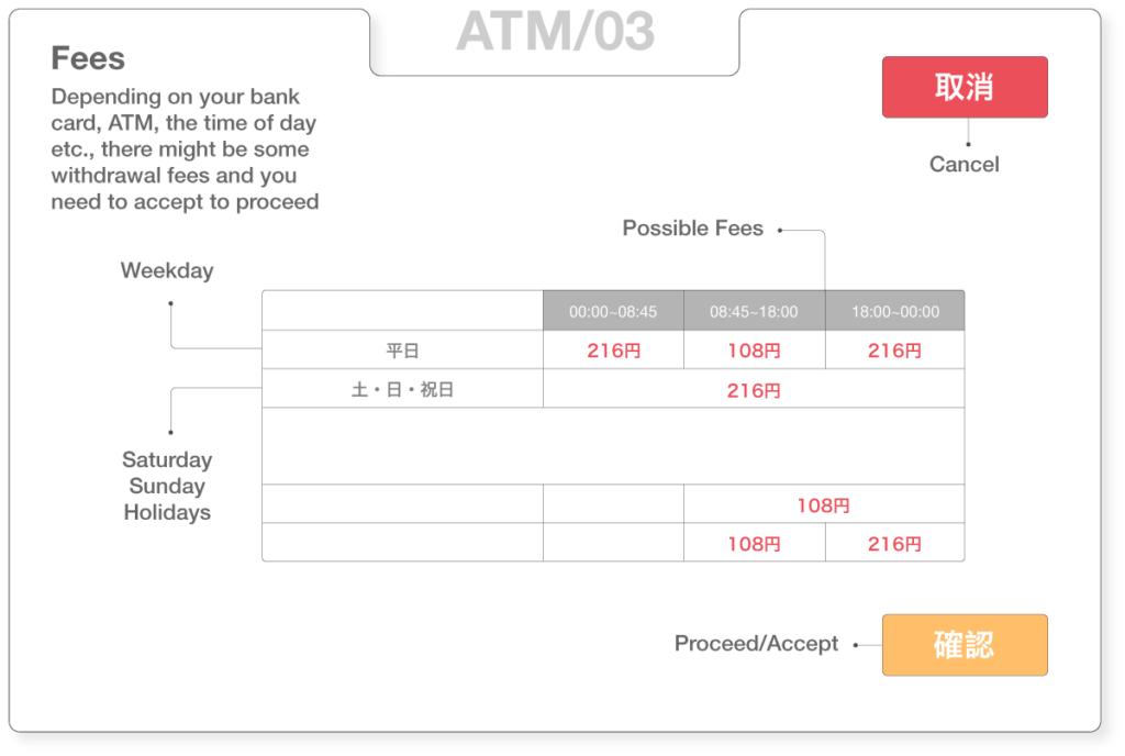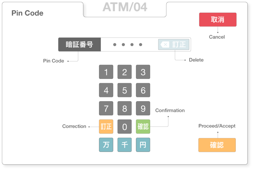 그러나, 특히 소규모 지방은행 가운데 ATM 인터페이스가 일본어로만 제공될 것이라는 입장을 고수하는 은행들이 몇몇 있습니다.