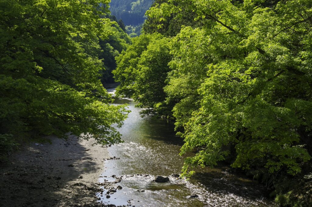 오쿠타마에 위치한 요자와 강은 수영과 휴식에 완벽한 맑은 물이 있는 아름다운 환경을 제공합니다. 주변 지역은 푸른 나무가 많고 도시에서 벗어나 고요한 휴식을 취할 수 있는 곳입니다. 강을 따라 하이킹 코스가 있어 방문객은 무성한 숲을 탐험하고 평화로운 환경을 즐길 수 있습니다.