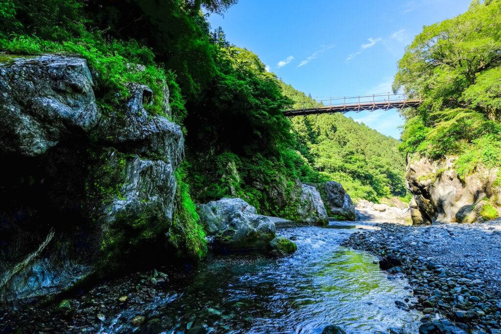 치치부-타마-카이 국립공원의 타마 강을 따라 미타케 협곡이 있습니다. 이 협곡은 맑은 강물, 멋진 단풍, 하이킹, 강 트레킹, 낚시와 같은 야외 활동 기회로 유명합니다. 이 지역에는 여러 전통 여관과 온천도 있어 휴식을 취하기에 좋은 곳입니다.